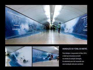 Das etwas merkwürdig und angsteinflößend erweiterte Plakat wurde in Brasilien in der U-Bahnstation Cantagalo in Copacabana, Rio de Janeiro platziert und erfüllt aus meiner Sicht sehr genial seinen Zweck für den Weltuntergangsfilm.