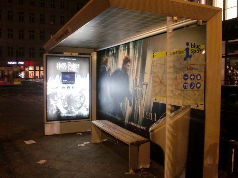 In diversen Berliner Bus- und Tramhaltestellen (unter anderem auch am Hackeschen Markt in Mitte), können Fans des Zauberlehrlings genau so wie Passanten und Wartende erste Ausschnitte aus dem Film sowie Interviews mit den Stars ansehen. Möglich wird dies über ein Videodisplay das in die Haltestelle eingebaut wurde und auf dem über drei Knöpfe anwählbare Clips zu sehen sind, die die Wartezeit auf den nächsten Bus bzw. die Straßenbahn verkürzen. Um auf die interaktiven Bildschirme hinzuweisen, wurde auch die restlichen Bereiche der Wartehalle aufwendig mit Postern und Folien im Harry-Potter-Design dekoriert.