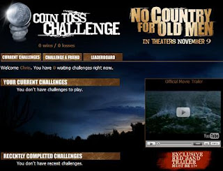 Chris schreibt über ein kleines „Kopf oder Zahl“-Spiel, das zum Start des neuen Coen-Brüder Films „No Contry for Old Men“ auf Facebook gelauncht wurde.