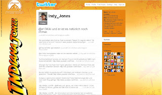 Es stellte sich relativ schnell heraus, dass es sich um den Twitteraccount von Paramount Pictures Deutschland für Indiana Jones handelt, womit die deutsche Dependance den amerikanischen Kollegen folgt, die seit kurzem live aus Hollywood zwitschern.