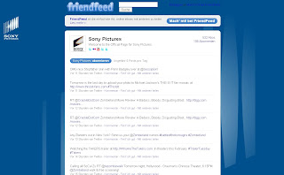 So setzt Sony Pictures auf Friendfeed und zeigt dort nicht nur Notifications wenn ein neues Video auf den offiziellen YouTube Channel hochgeladen wurde, oder Filmstills auf Flickr zu sehen sind sondern natürlich kann man dort auch die unterschiedlichen Twitterfeed des Studios mitlesen, was natürlich den gräßten Teil des Contents ausmacht.
