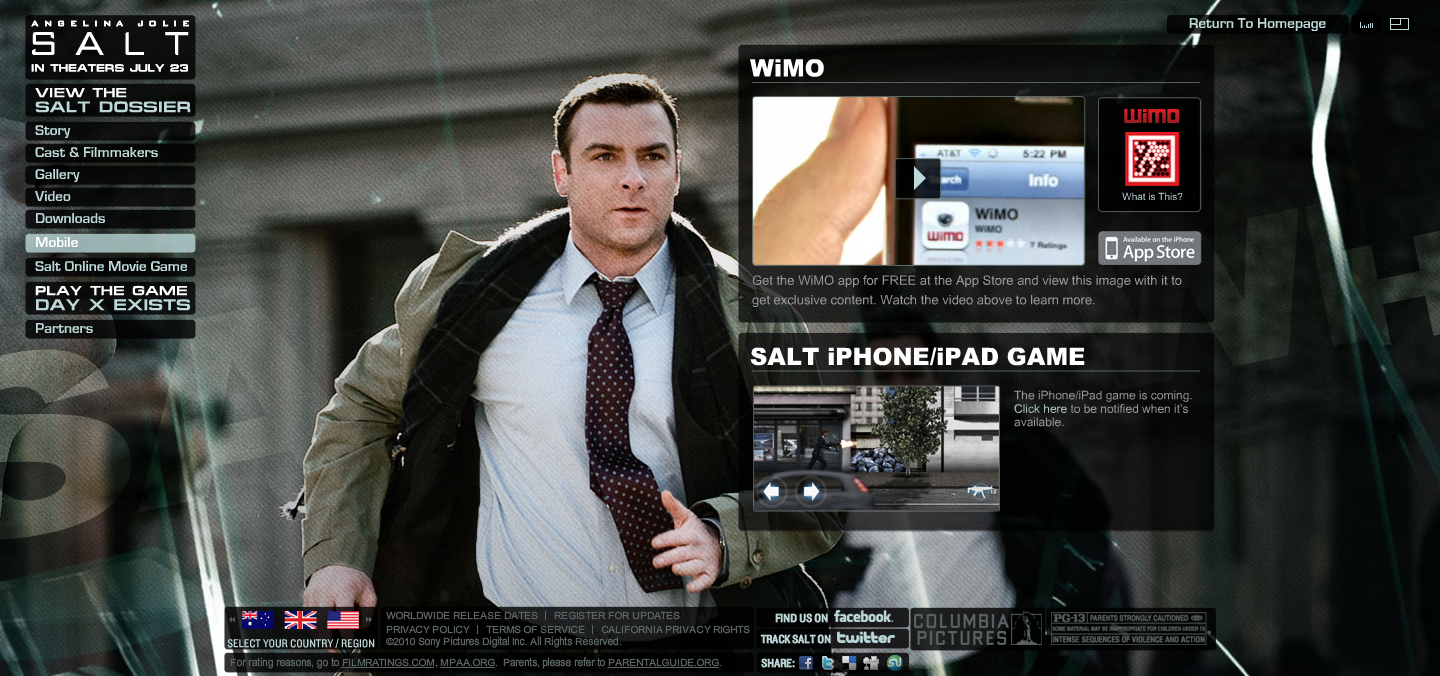 So wird die Mobile App zum Beispiel auf der offiziellen Seite des neuen Angelina Jolie Thrillers Salt beworben. Im deutschen CineStar Magazin waren die Codes zum Film The Bounty Hunter zu finden und versprachen ebenfalls den Trailer zum Film und auch auf den aktuellen deutschen Werbemedien auf Litfaßsäulen in Berlin sowie auf der offiziellen Seite zum Film The Karate Kid taucht der WiMo Code auf.