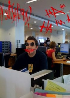 Zum Einen handelt es sich um die iPhone Applikation zu The Dark Knight die noch relativ einfach gehalten ist. Dieses kostenlose App legt einen Layer über die Kamera des Apple-Handys, wodurch es möglich wird, jedem fotografierten Motiv eine Joker-Fratze zu verpassen.