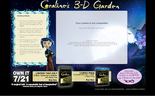 Auf www.coralines3dgarden.com kann man nach Installation eines Active-X Plugins und nach Ausdruck des Markers den 3D Garten der Hauptfigur erkunden.