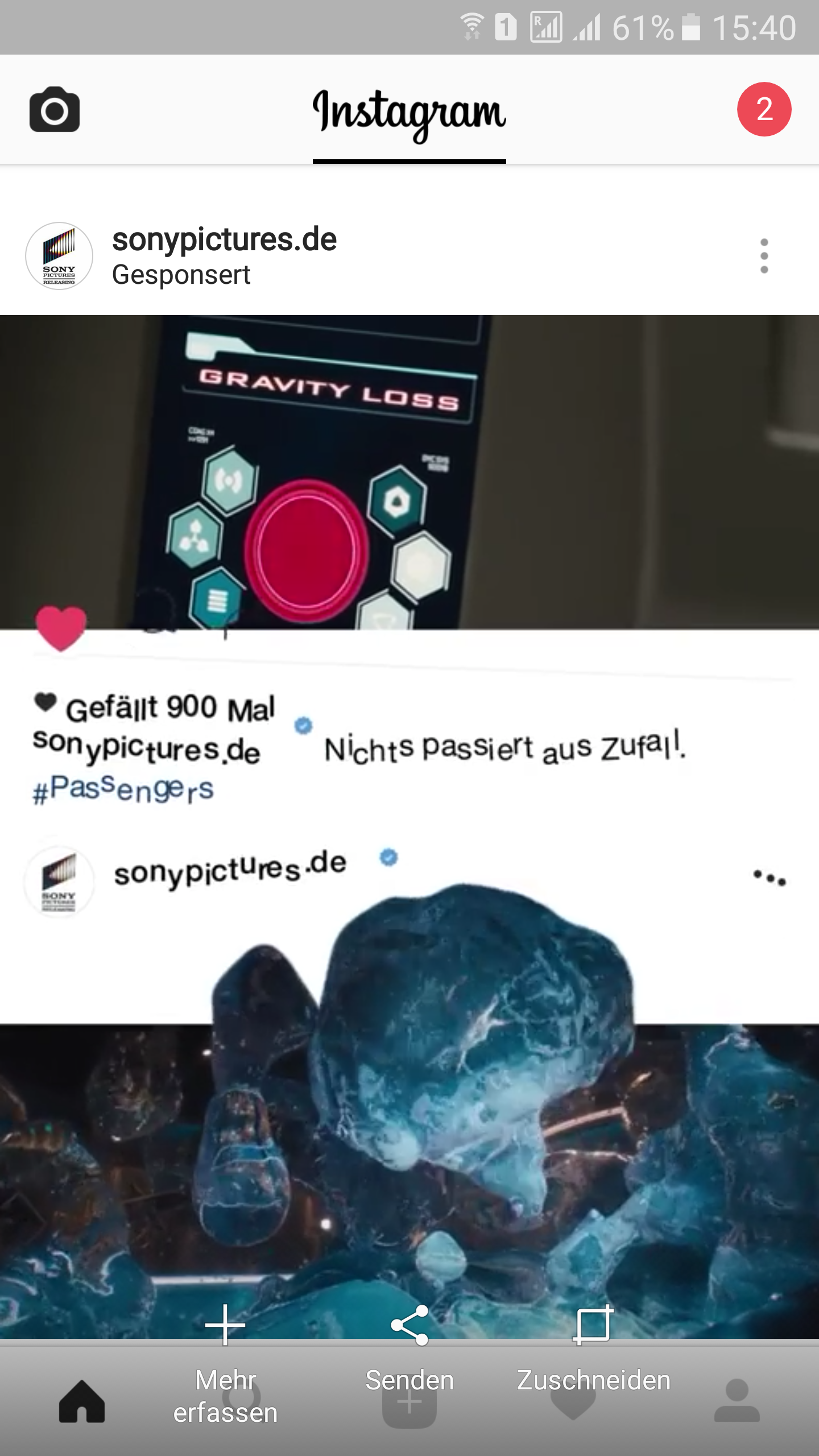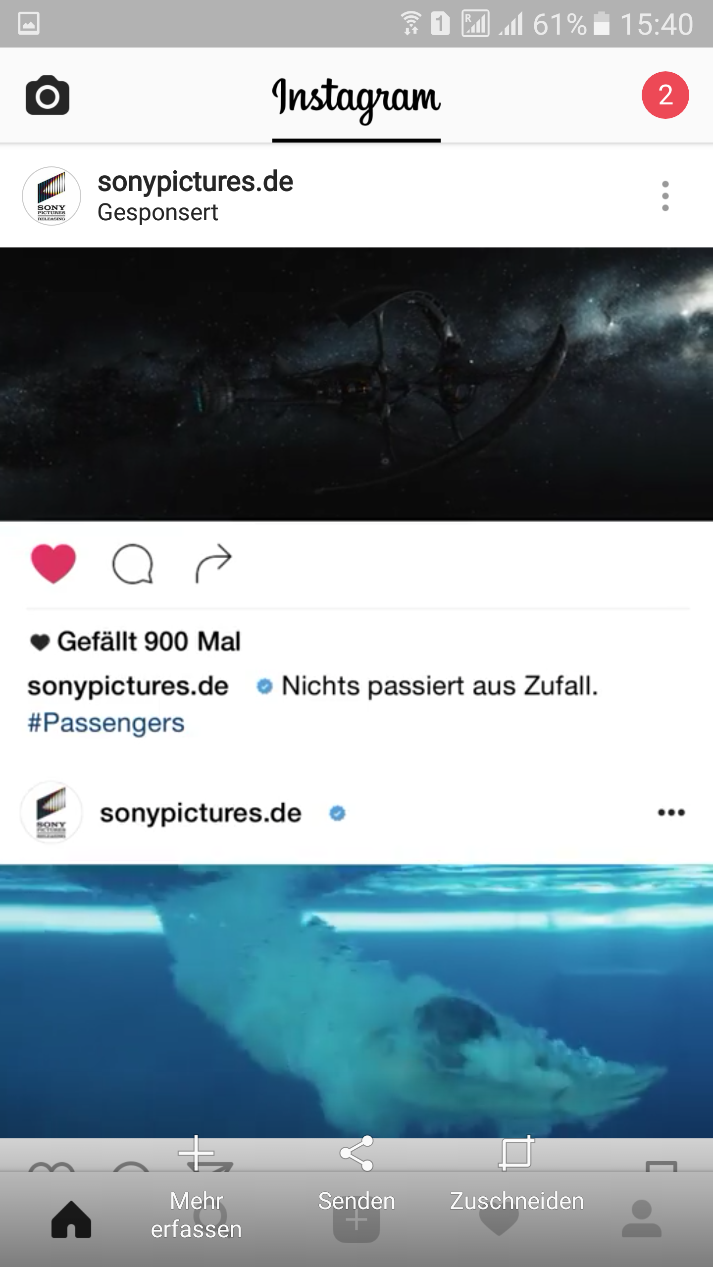 Ähnlich der YouTube-Übernahme von Sylvester Stallone zu den Expendables bricht das Video plötzlich aus dem normalen Frame aus und nimmt den kompletten Instagram-Screene in. Ein beeindruckendes Erlebnis, das sehr gut umgesetzt wurde und aus meiner Sicht in jedem Fall als Vorlage für weitere Instagram-Promos gelten sollte. Hier ein Link zum Video.